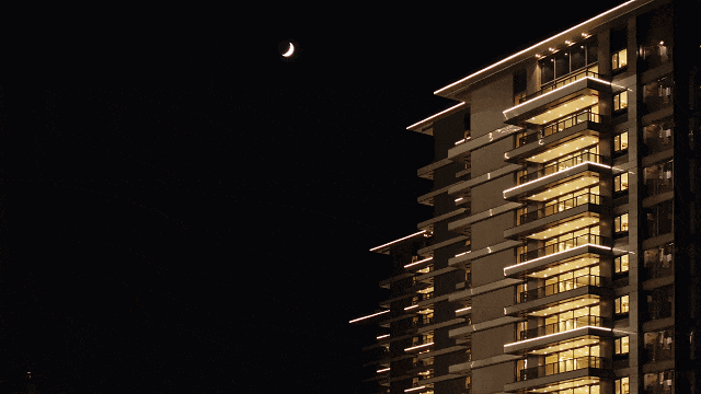 外立面以ART DECO风格的玻璃幕墙与铝板组合,金属线条对缝工艺精准;室内采用瓦楞式波浪形电视墙、定制化收纳系统等,彰显匠心。