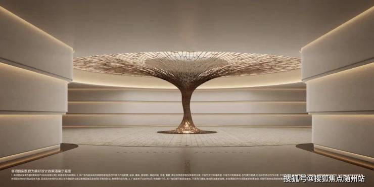 负一层多功能会所空间和中央车站相连接,以一颗造价百万的艺术造型的“黄金树”作为通往地下会所的空间过渡,与地上天光云廊的归家乔木相倒映,形成地面与地下的双归家仪式感与尊贵感。