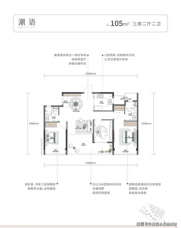 揽景小高层建筑面积约105-130㎡,为最大化景观面,突破性设计建筑面积约105㎡南向四开间。