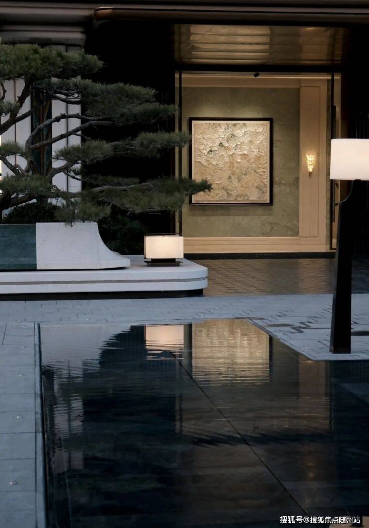 特选江南诗意感的园林树种:四棵百年红枫。开门见山,独属于杭州天珺的城市山林度假感,精致的水景采用了印度银河绿大理石作为基底,水流从挑台上潺潺流下,营造出山林叠瀑的意境。行走其中,我们可感知到每一处细节都经过精心雕琢,无论是地面石材的精心挑选与面层打磨、灯光的布局,还是装饰的点缀,都体现出设计对品质的不懈追求。