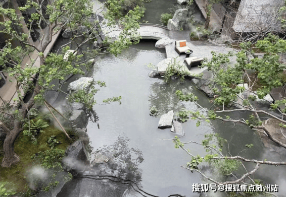 茶室:整面玻璃落地,室外水系景观庭院,喝茶静坐很雅致。