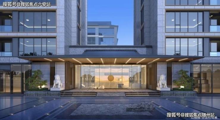 而建筑风格沿袭传统宋式美学,勾画出飞檐、歇山顶、窗棂等元素,立面以“四面铝板+三玻两腔玻璃”,搭配大面积蓝眼睛石材,古典而不失现代感,充满着高颜值的辨识度,让人一眼就怦然心动。