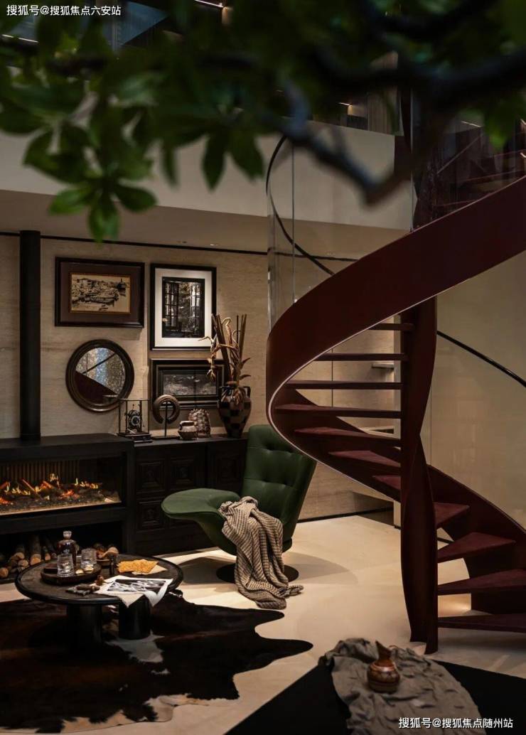 休闲区如温暖的磁场,衔接起灵感迸发的创作区与静谧沉思的展廊。壁炉中真火木柴持续跃动橙红光晕,将暖意漫射在扎染羊毛毯上,边柜上放置的手作艺术品有着无言的故事。低矮的皮革休闲椅和懒人沙发围合沉浸式氛围角,让品酒夜话与画布前的灵感迸发自由共鸣。
