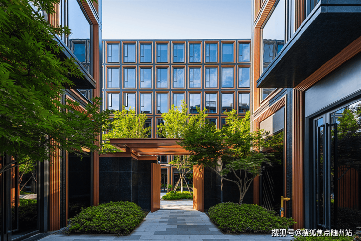 杭州国际数贸港的产品设计溯源雷姆·库哈斯121E 22ND设计原型,以“教父级当代建筑灵感”打造大面积玻璃幕墙+局部铝板幕墙的外立面,融入斯卡帕金线符号,赋予独栋总部“奢华质感+优雅画布”的视觉张力。项目容积率仅2.5,绿地率达20.4%,以群岛式花园布局打破传统产业园区的冰冷感,营造“园中有楼、楼中有园”的低密商务氛围。