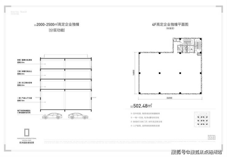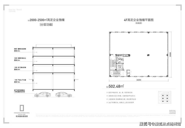 2000-2500㎡独栋是项目的核心产品,分为4F/5F两种形态: