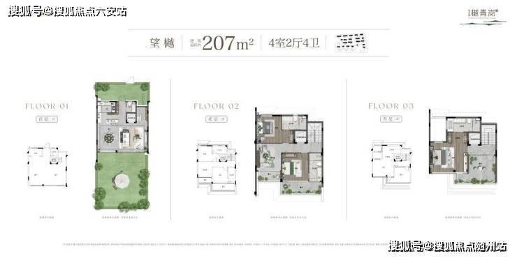 #### **建面约207㎡「望樾」:五房四卫,层高4.5米**