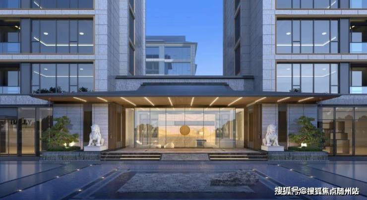 颂香望庐的建筑外立面沿袭传统宋式美学,采用四面铝板+三玻两腔玻璃立面,搭配爱马仕灰和蓝眼睛石材,古典但不失现代质感。