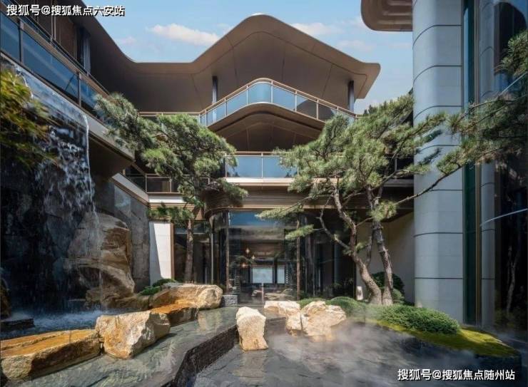 ✅项目以东方宋韵与现代艺术相融合为设计理念,入户门厅采用引园入院的手法,门前水流透过景墙、两侧相迎的黑松以及铜元素入户大门的设计,让归家之路更具尊贵仪式感。