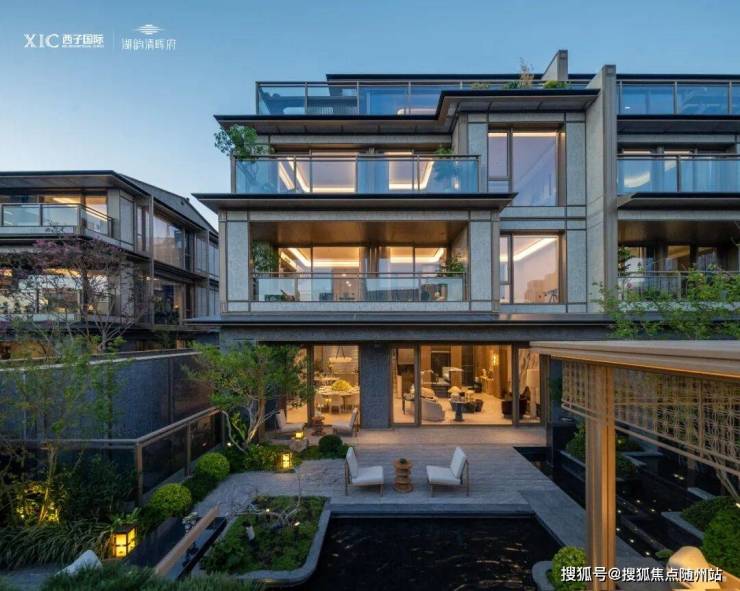 排屋:挨着湖泊的私属庭院,青石板汀步、叠石小品与修竹相映,还原《园冶》里的诗意;室内每层均设观景位,四楼空中露台连通茶室,傍晚可与湖灯、星辰共饮;