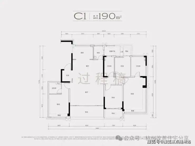 建面约190方C1户型,五房两厅三卫