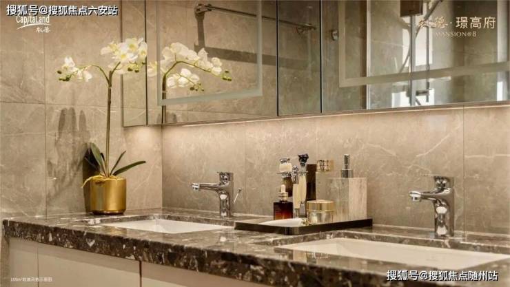 精装标准对标国际一线,厨电选用老板洗碗机+德系唯宝卫浴,卫浴配置摩恩毛巾架、智能盖板;地暖采用菲斯曼壁挂炉,新风系统为瑞博恩品牌,细节处融入“如意锁”“玉树琼枝墙”等东方美学元素。