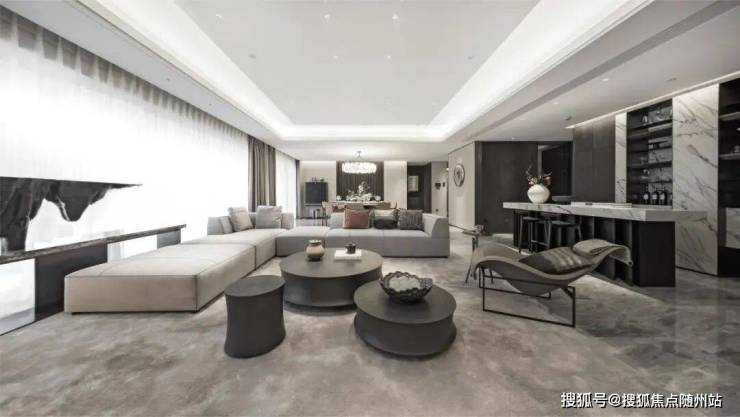 约440㎡“香奈儿”西边套,浅淡得宜的洁白,温润如玉的蜜色,将空间衬得时髦优雅。