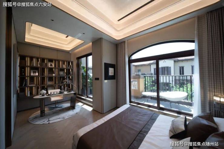 睡眠区与书房联通,书房不仅仅是一处工作空间,也是陶冶情操的艺术空间,光影落入室内,自然与灵动交织的空间里,让思绪得到更充分的延展。
