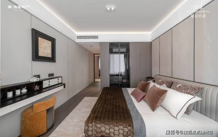 星润名著窥到了这一痛点,在客厅够用的基础上,做到双套房设计,并且两个卧室空间感都很强。