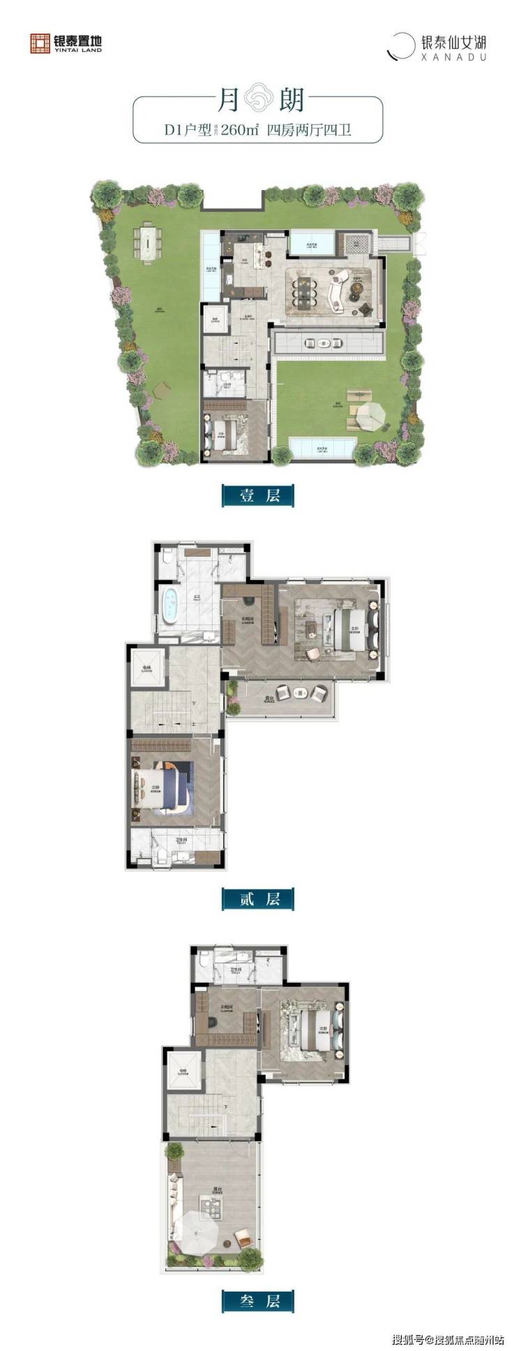 地上三层(一层3.4米、二层3米、三层2.9米+坡屋顶),地下一层(层高3.2米-6.8米)独门独户,拥有无数人垂涎的前庭、后院生活,将仙女湖畔的深林与小径美景延伸到园里来,开启庄园般的自在奢享。
