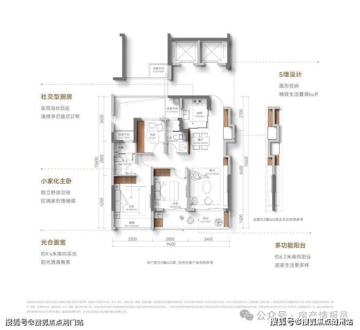【光合面宽】约9.4米南向采光,阳光洒满角落