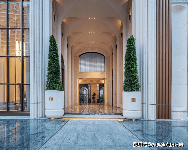 创新设计:采用台地设计提升首层标高至约12米,贝金米黄石材拱券搭配古铜色金属线条,融合东西方美学3。
