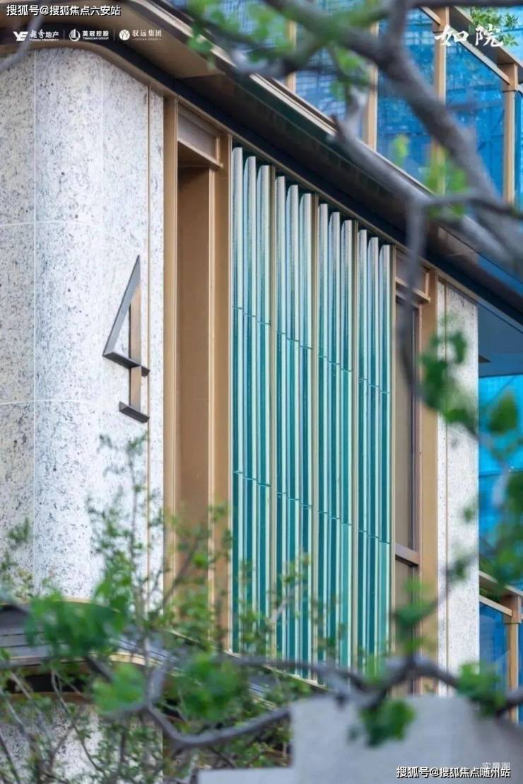 项目外立面采用天青陶板,经20多道工序烧制,复刻南宋汝窑“雨过天青”釉色,兼具防潮、自洁功能。立面融合六和塔斗拱、如意云纹镂空格栅等元素,以现代铝板、玻璃幕墙重构东方韵味。