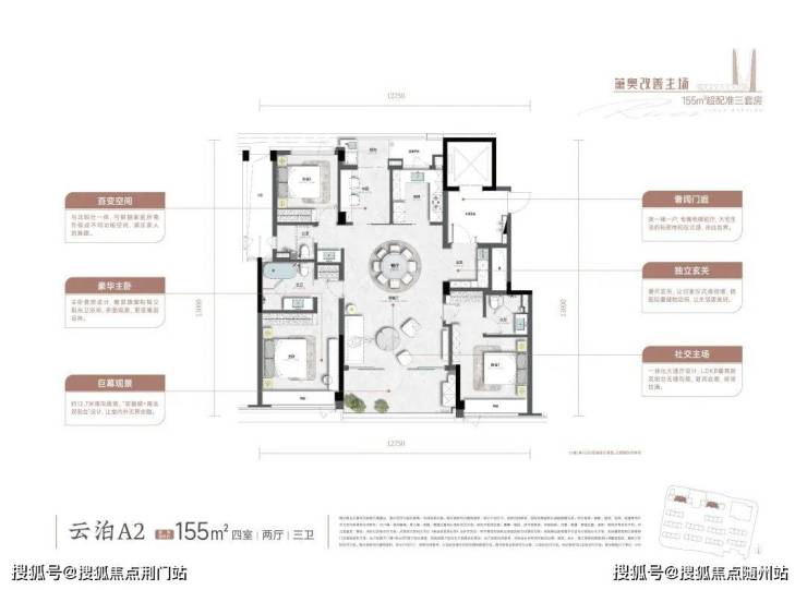 建面约155㎡户型:首先,空间利用率太顶了。双阳台、双飘窗、设备平台、电梯前室全配齐,实际体验感完全不输180㎡的大平层,是真正的小面积大空间典范。其次,归家动线方面,类一梯一户设计、外加宽敞的电梯前厅,直接把尊贵感拉满。