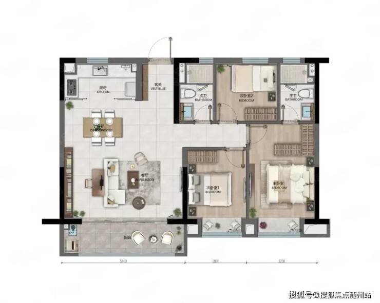 112平米 户型:边厅设计为落地窗,三面采光通风、大尺寸餐客厅(横厅面宽约 5.9米);可以做到拥有独立收纳空间(衣帽间、储藏室)设计;没有过道,浪费空间少,利用率高。