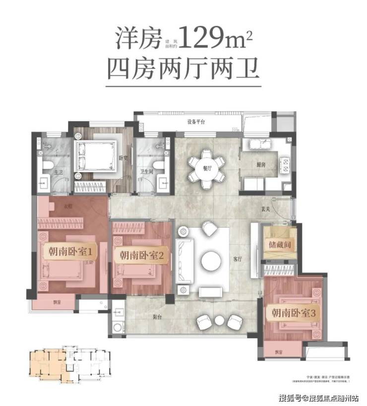 还有建筑面积约129㎡的户型,在洋房高得房率的基础上,更遵循了空间“零浪费”的要义——