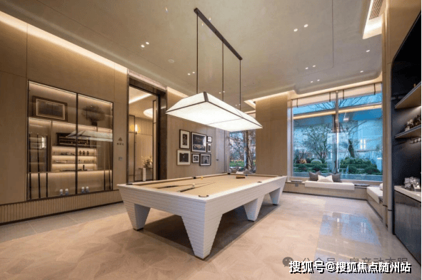 下沉式布局的空间设计,运用大面积落地玻璃窗,让整个区域充满通透感与轻盈感,衔接多个棋牌空间,配套影音设备,这里既可三五好友棋牌对决,也可组织小型派对,张弛有度的规划,营造出满满沉浸感,成为邻里情感联络的“充电场”。