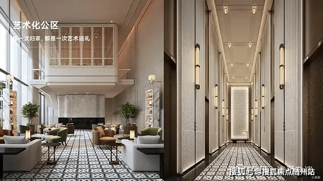 更难得的是,公区由全球酒店设计第一的CCD郑中设计事务所操刀,约340㎡归家大堂挑高8.2米,海派美术馆风格让每一次归家都像是一场艺术巡礼。