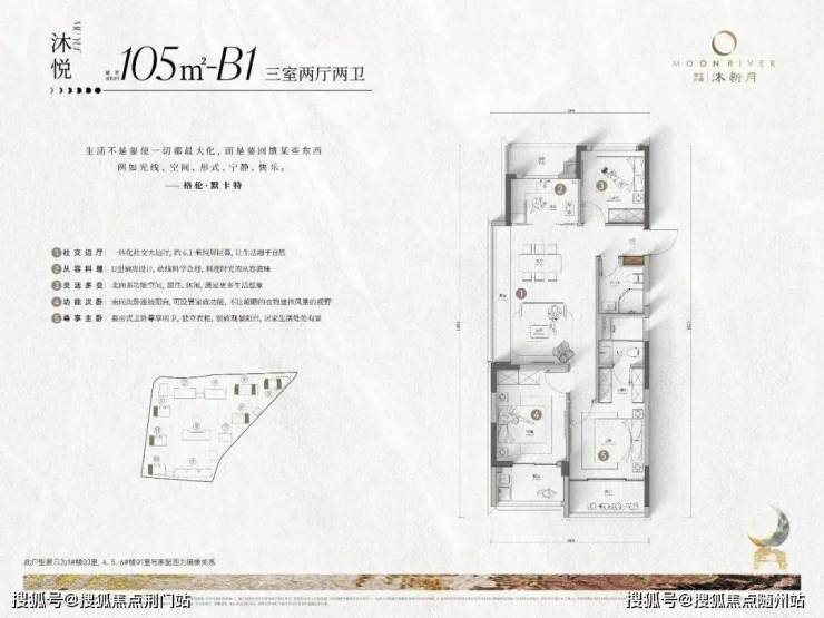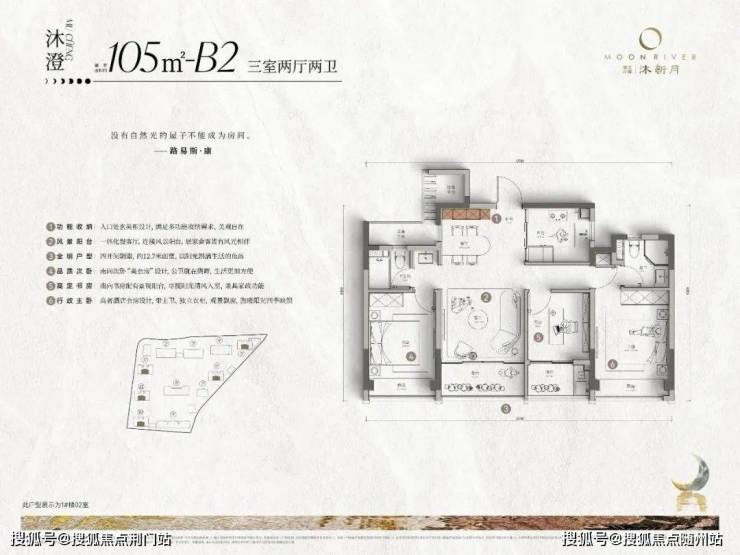 沐新月首开1号楼、2号楼,户型建面分别为约96㎡、105㎡、120㎡,其96㎡三房户型,堪称小户型设计的教科书级范本!