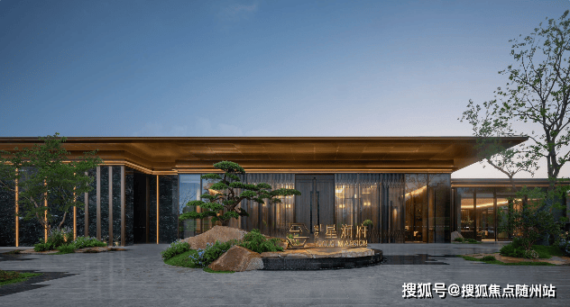 外立面:铝板 + 天然石材 + 三玻两腔玻璃,现代东方美学