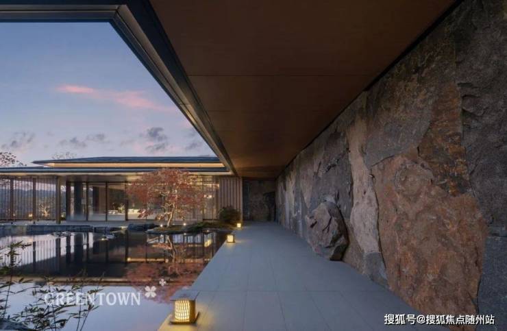 步入咏溪云庐示范区主入口,大堂门仪的隐奢感迎面而至,仿若遁入山水秘境。转至回廊豁然开朗,眼前跃入桃花源般的景象。来自太行山脉的中国黑老石皮砌于墙面,珍贵羽毛枫于水中安静一隅。山水相栖,浓缩在归家的动线上。
