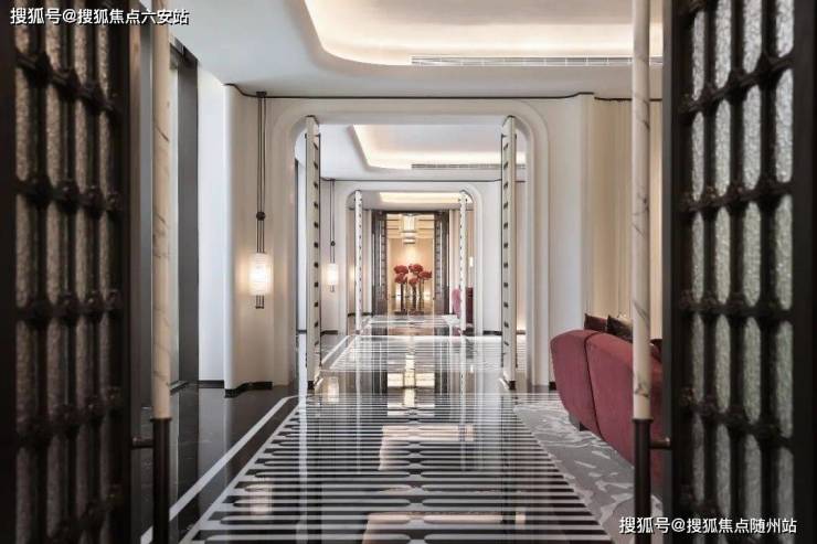 奢华从某种角度讲,需要扎实的投入。而在所有有关奢华的表述中,石材是不可或缺的载体。湾流800的首层大堂,地面和墙面,用到的石材就多达6种,不少还是进口而来。整体以米白色为主基调,背景采用白雪公主大理石,两侧则是蓝翡翠大理石搭配清雅玉石材,地面又是保加利亚灰与雅典白玉大理石、宝柏灰拼花,让整个入户大厅在复古中透出文艺复兴时期的艺术感。