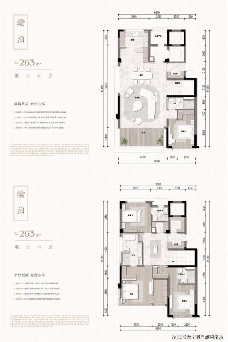◎引领市场的奢阔层高:从生活居住动线出发,从社交到休憩细致考量,将空间让渡社交空间,联排合院客厅层高约3.8m,叠拼客厅层高至高约3.55m,给予居住自在体会