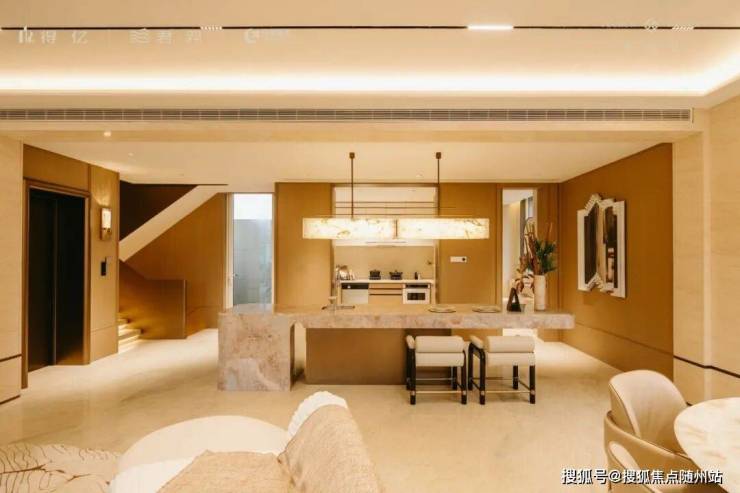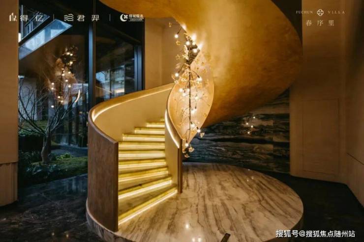 拾级而下,旋转楼梯步步生金;缓步前行,无论是沙盘区熠熠生辉的璀璨穹顶,还是滨水会客大堂与下沉式书吧前的大幅落地窗景,又或是水吧台前目之所及的奢石、鎏金等选材及细节,都让人忍不住驻足细品。