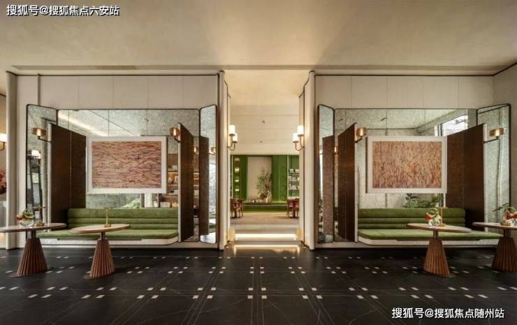 项目在材质选择上极为考究,可见发光石材的背景墙,瑰丽酒店同款壁灯、昂贵的黄虎眼奢石制作的接待台等高端材质。这种对细节的关注体现了绿城对精装品质的高度重视,为业主提供真正意义上的拎包入住体验。