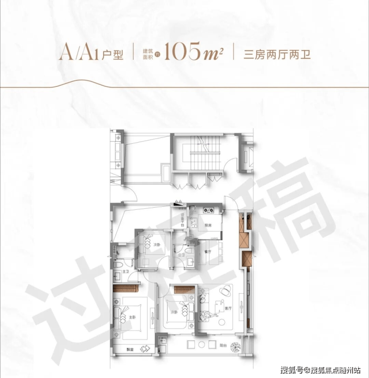 豪华餐客厅,拥有一整面墙的通透采光。双卧室朝南,套房式主卧,连接双联阳台,整体户型窗墙比很大,难得一见的“阳光房”,住起来更舒服。