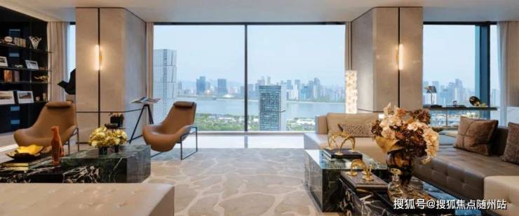 优雅步行入内,约180㎡的超级云端会客厅,窗外是270°的奥体江山图,一览无余的江河汇,这样尺度带来的辽阔观景感,是很多产品无与伦比的,一点点澎湃感在观众体内陆续迸发。