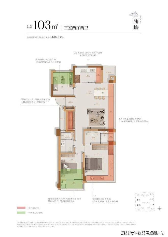 最大约100%得房率、迭代升级户型,89㎡-104㎡三房甄选作品115㎡-132㎡四房改善作品