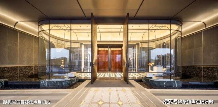 不仅是尺度震撼,门庭在造型、选材与工艺上的精奢营造同样可圈可点。大门景墙汲取“江南府邸”的灵感,将金柱、影壁等元素运用到设计中,大量金属材质的铺陈,营造出“金顶垂云”的奢华感,给人第一眼的惊艳。