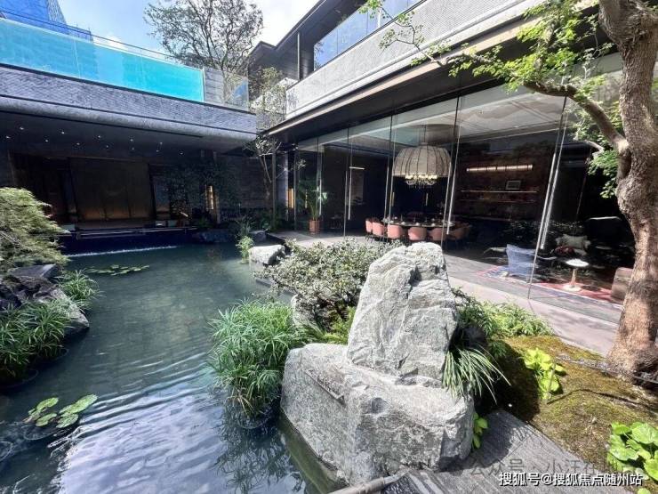 下沉式庭院:约1000方,复刻《溪山清远图》,从东侧“四水归堂”之门,经“十八学士”下沉庭院,景观设计层层递进,通过整面落地玻璃让下沉式景观和归家大门组合一整体,视觉冲击感强,悬挂户外泳池设计,地上地下互相成就景观视野。
