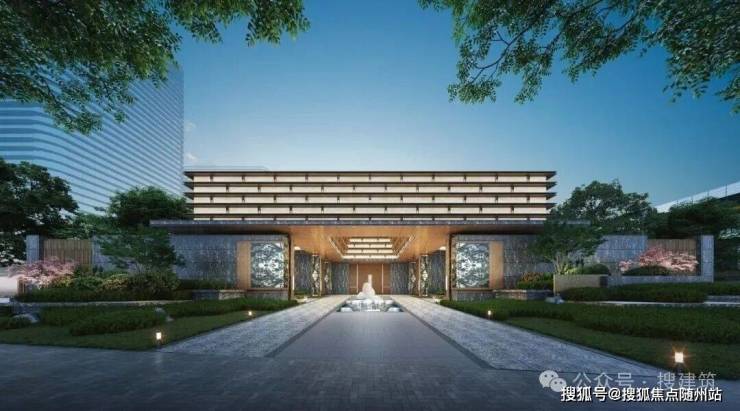 外立面采用:基材为石材,建筑设计由汇张思的张润舟操刀,其以宋风雅韵为内核,打造现代宋风建筑。建筑形制灵感源自蜀山先照寺“重檐叠韵”,独创的镂空金属格栅萃取了非遗竹编“六合”之形、融合宋锦纹理工艺,保留了东方建筑的韵味。