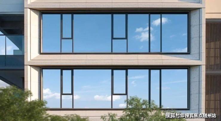 其次是建筑采用经典的三段式立面,集合仿石铝板、三玻两腔LOW-E玻璃和香槟色铝板线条,形成方正有序的框感,把每一户的居住领地感拉到极致。
