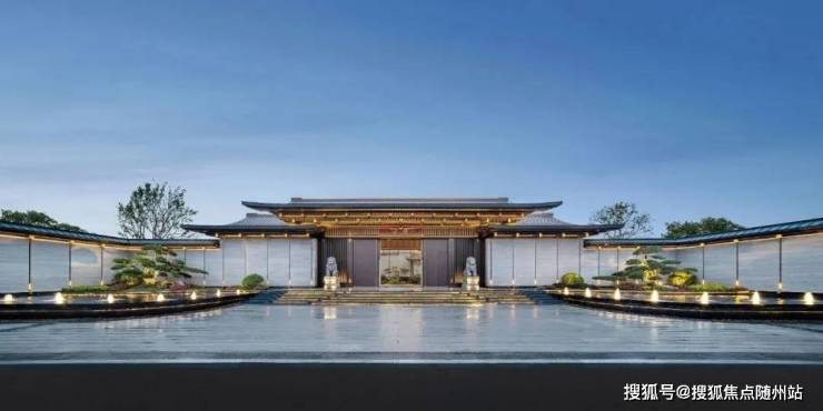 外立面与景观:四大面铝板+约61米宽中式双重檐大门+独特三进五境九景园林景观