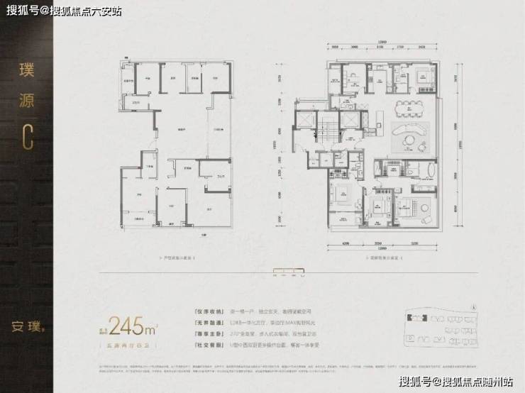 海威中天·安璞的户型设计极具匠心,全部户型均实现五房格局,满足高端改善家庭的空间需求。高层主力户型约210-280平方米,顶层跃层约275-346平方米,排屋主力面积约410-510平方米。