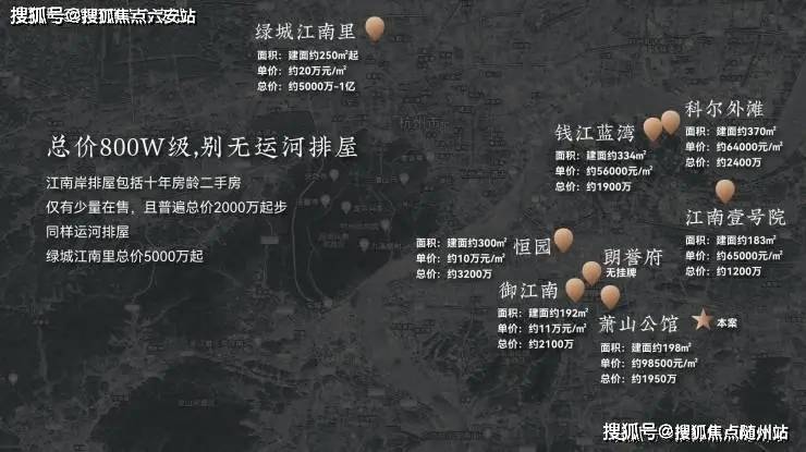 - **最后限价2万+的叠墅**:项目为萧山主城最后一批限价楼盘,毛坯均价约2.66万/㎡,叠墅总价400万级起,排屋约900万起,仅为同品质产品价格的1/3。