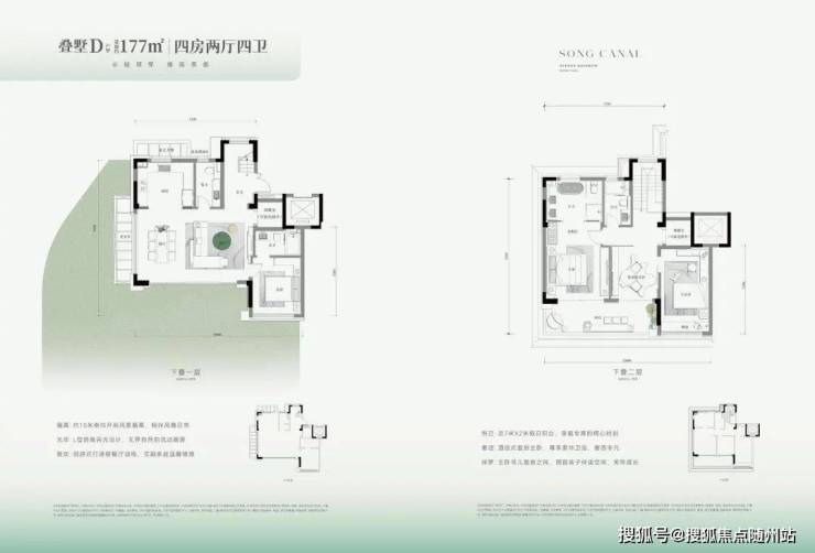 面积和形态的取舍一直是叠墅的一个难点。河印府叠墅实现了产品形态与面积的均好。相比市场那些动辄产权300+㎡甚至350+㎡的产品,其建筑面积约为136-176㎡,控制得当。虽然产权面积被有效控制,但墅居产品该有的空间感却没有减少,前庭后院、地下延展空间、屋顶空间.....一系列空间,与市场上300㎡+产品在尺度表现上并无太大差异。