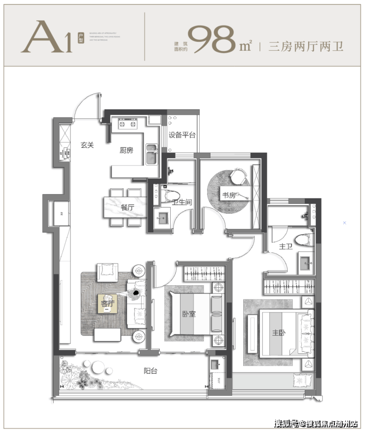 对于首次置业的年轻家庭而言,即便预算有限,对家的空间与品质也绝不妥协,所以如何实现小面积也有大享受成为核心诉求,而约 98㎡户型恰好给出了完美答案。