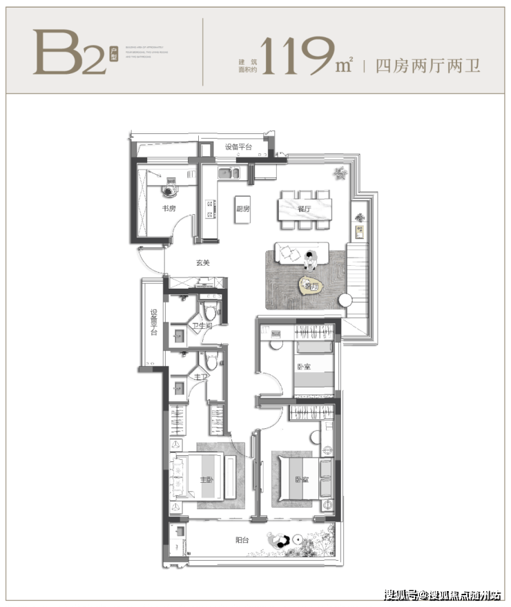 对于追求品质的改善家庭而言,置业不仅是空间的升级,更是生活格调的进阶,如何实现奢阔尺度与舒适体验的双重满足,成为核心诉求,而约 119㎡户型恰好给出了完美答案。