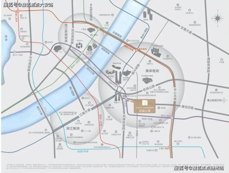 揽奥云璟的地段价值,体现在其不可复制的“奥体正芯”坐标。项目位于奥体、滨江、钱江新城形成的黄金三角区域,直线距离杭州地标“莲花碗”仅约1.5公里,与奥体中心仅一站地铁之隔。