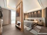 三层是主卧起居,这是主人的私密天地。优雅的悬浮设计与精美的弧角结构式共同构成了舒适而尊贵的睡眠体验。忙碌一天趁着休息时光,在主卧的小吧台拿一瓶自己最爱的红酒,两人落座在舒适的休闲椅上,趁着月色迷人,听着虫鸣小酌一杯。