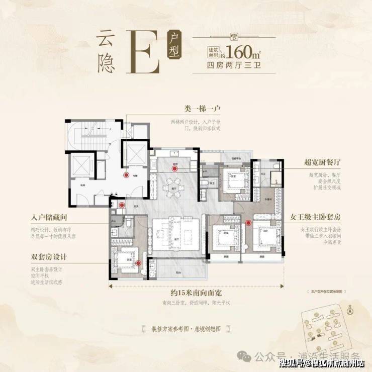 精装修:配备中央空调、地暖、新风系统等高端配置,厨电采用品牌产品。